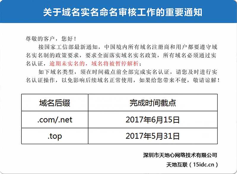 接國家工信部最新通知,中國境內所有域名注冊商和用戶都要遵守域名實名制的政策要求,要求全面落實域名實名政策,所有域名必須通過實名認證,