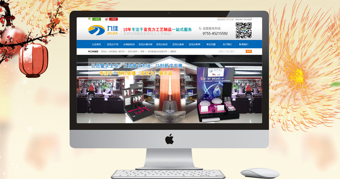 深圳九佳有機玻璃有限公司是集創意策劃、設計開發生產制作安裝服務為一體的多元化企業。一直專注于“有機玻璃(亞克力)展示品,家居工藝品”的生產制作,是集研發生產和銷售為一體的專業化企業!是深圳地區首屈一指的大型亞克力有機玻璃制品生產廠家。公司現擁有綜合廠房8000平方米、辦公用房2000余平方米。熟練操作員工300名。同時全面引進臺灣成套加工設備和臺灣的技術顧問,是目前全國專業設計開發亞克力,水晶,五金,木藝,電子綜合實力最強的展覽展示制品的生產基地。公司具有先進的鉆石拋光機、水磨機、大型火拋機、布輪拋光機、激光雕刻機、大型CNC、注塑機、火花機、磨床、銑床、鉆床、平板印刷機、開料機、修邊機、吊鑼、噴沙機、鉆孔機、曬版機、絲印機、燙金機、熱壓機、烤箱等全套生產設備與技術。工藝包括:激光雕刻、鐳雕、無縫粘接、熱彎、無縫熱壓、開模注塑、拋光、絲印、彩印、噴油、噴砂等。