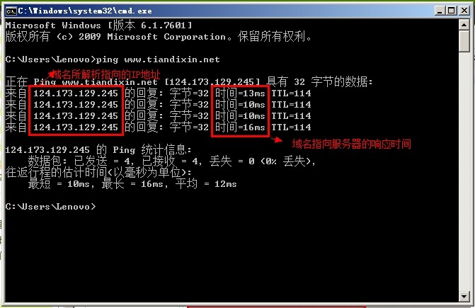 2、彈出cmd.exe程序以后,在黑色編輯器上輸入PING+域名,然后回車,通過對該域名PING出來的IP地址,就是我們自己網站所在服務器的IP地址。如下圖: