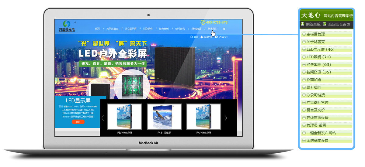前端100%內容可通過后臺操作修改,前端欄目與后臺欄目相互對應,易懂,易操作
